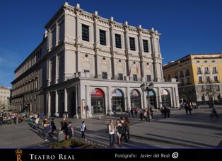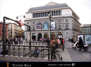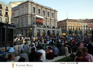 Adjuntamos cuatro fotos del Teatro Real: fachada principal (Plaza de Oriente), fachada de la Plaza de Isabel II, sala y retransmisión de una ópera en la pantalla de la Plaza de Oriente.