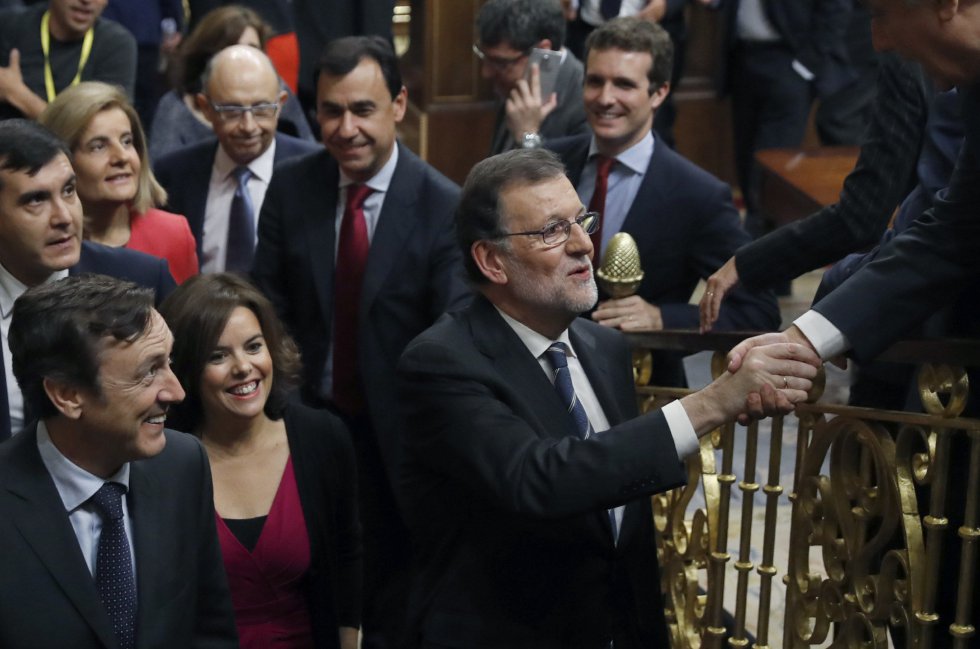 Rajoy le recuerda a Iglesias que están aquí porque «han ganado las elecciones» y que sin embargo, «ellos no han sido capaces de articular una mayoría razonable», lo que no significa que estén ahí por «culpa de Podemos ni gracias a ellos».